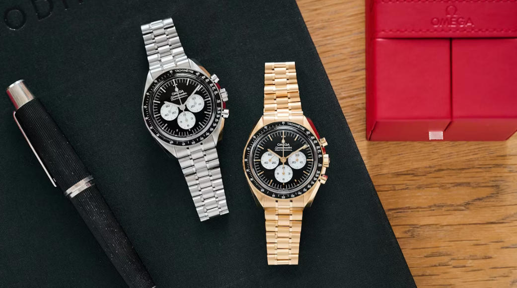 What We Know Today, AAA replica Omega watches introduces two new additions to the Speedmaster Moonwatch lineup, in the form of fan-favorite reverse panda dials. Coming in either stainless steel or Omega’s 18K Moonshine Gold, the design remains incredibly familiar, but this time the dial is constructed from two plates in a lacquered finish, and the bezels are rendered in ceramic. The top layer, the main dial, is executed in an ultra-glossy polished black surface with a varnished and lacquered finish. At the same time, cutouts for the three subdials reveal that the bottom layer is also glossy, but in that contrasting lacquered white finish. Each dial layer gets printed…